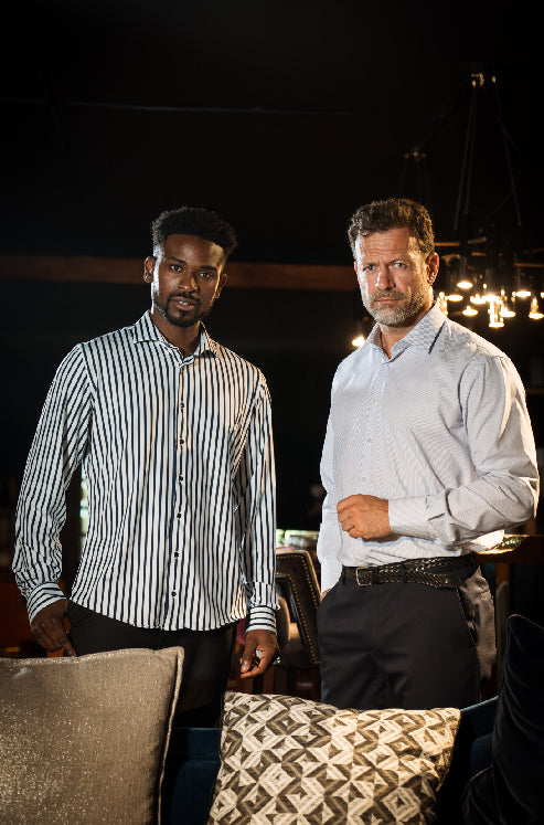 Camisa de homem com risca - Castanho